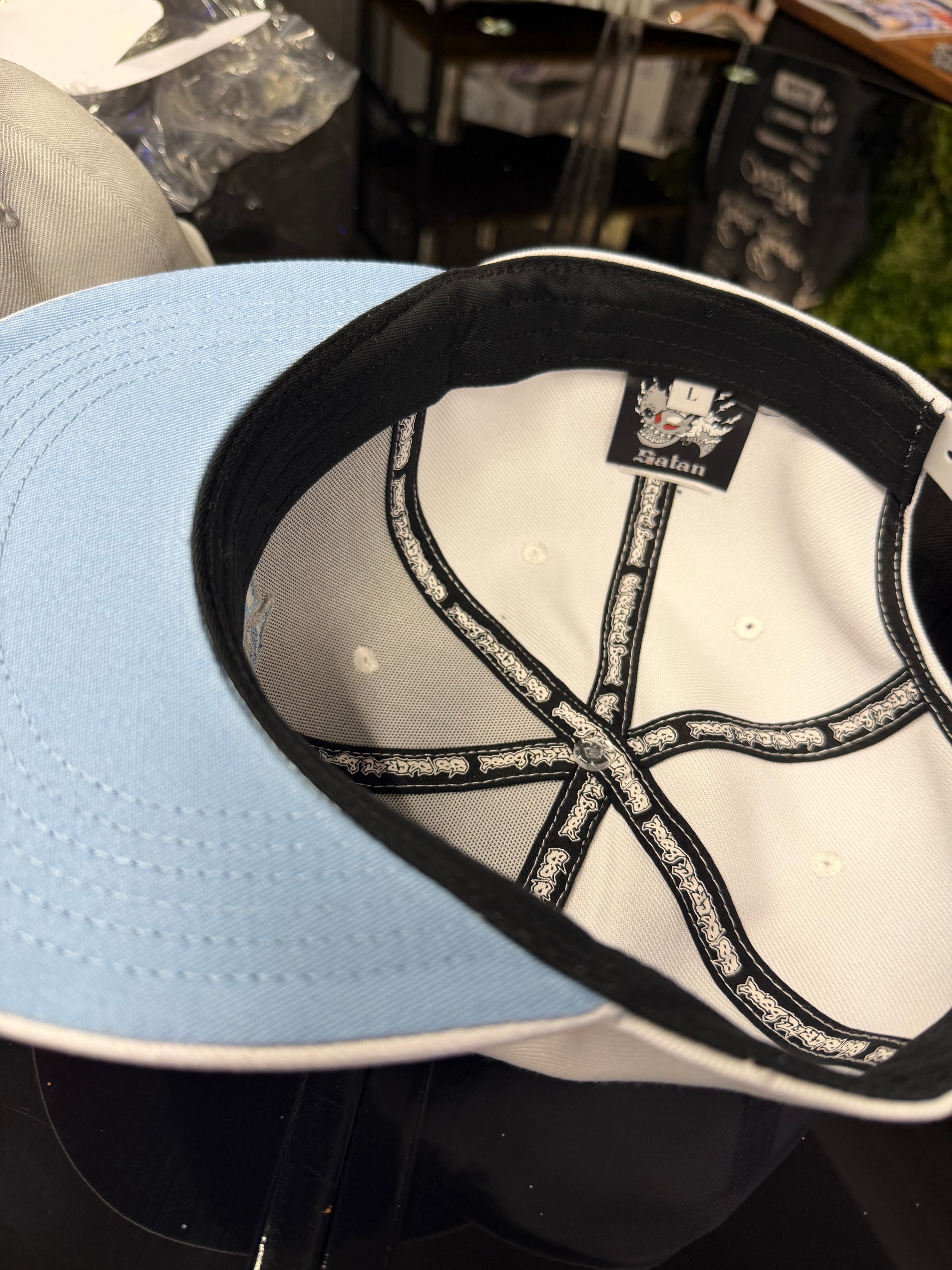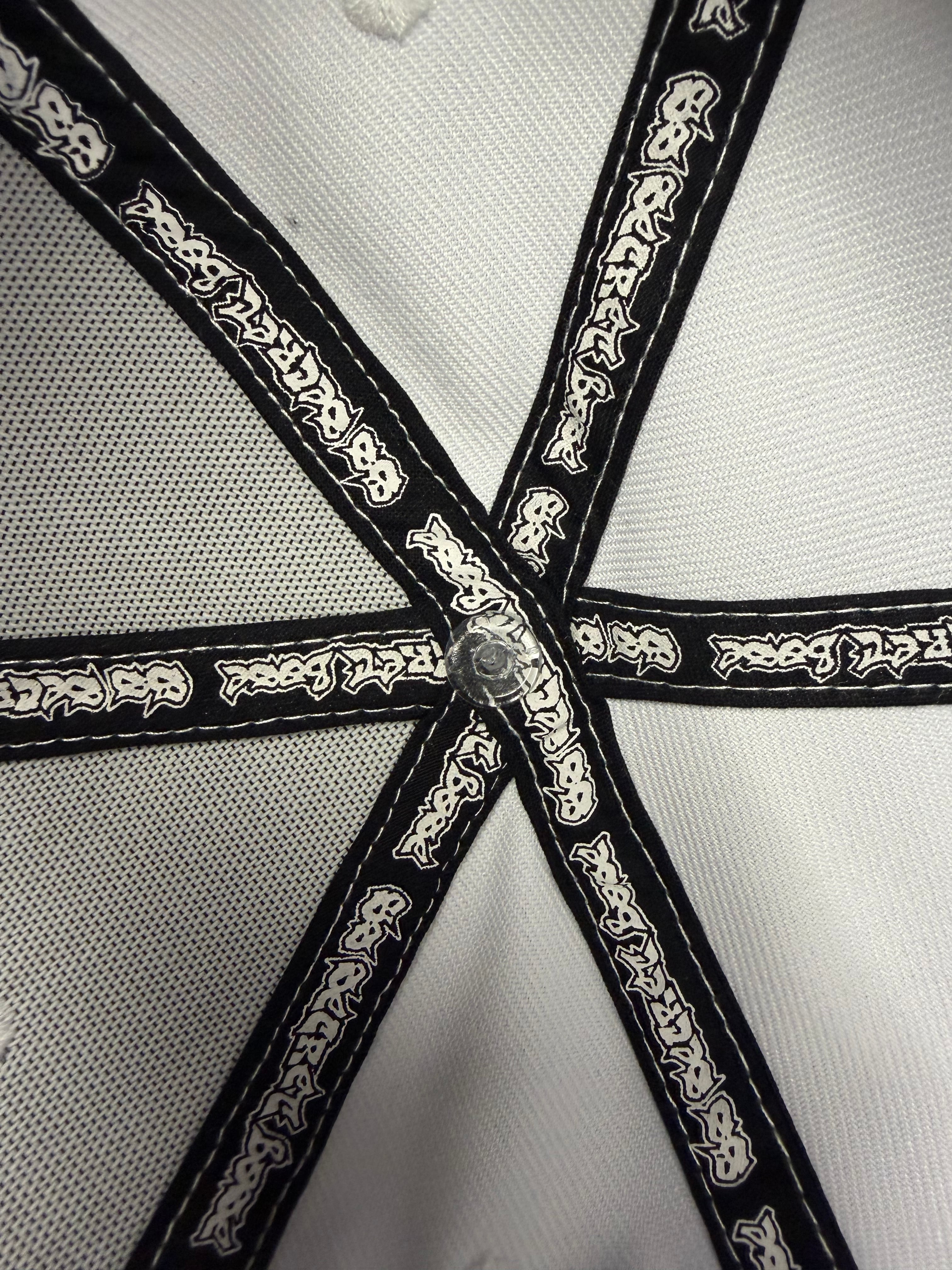 刺繍で正面にスーパーストライクのSSをサイドにはスラングパターンでSSsecretbase!キャップ内部にはSSsecretbaseのリボンを放射線状にあしらっています。