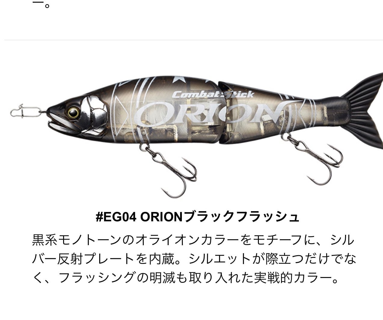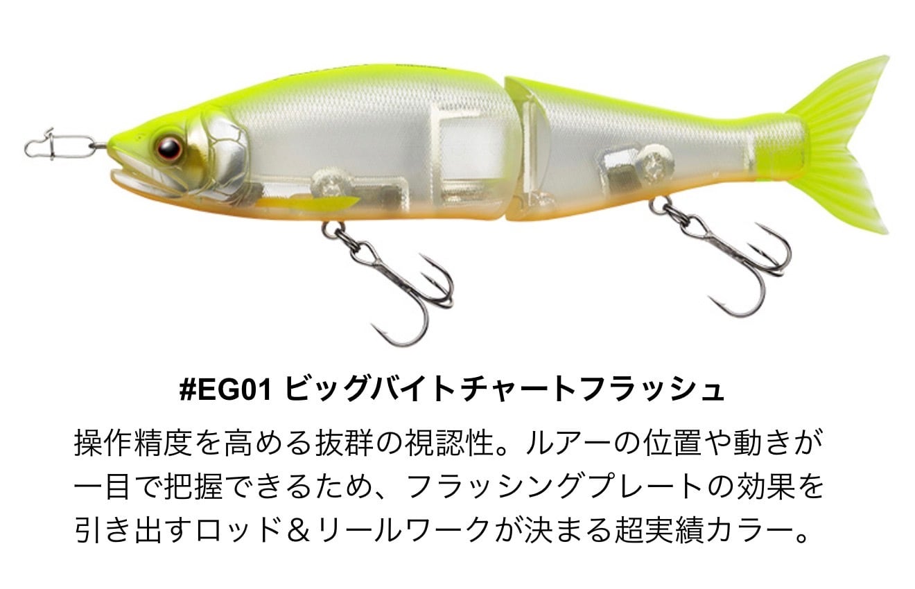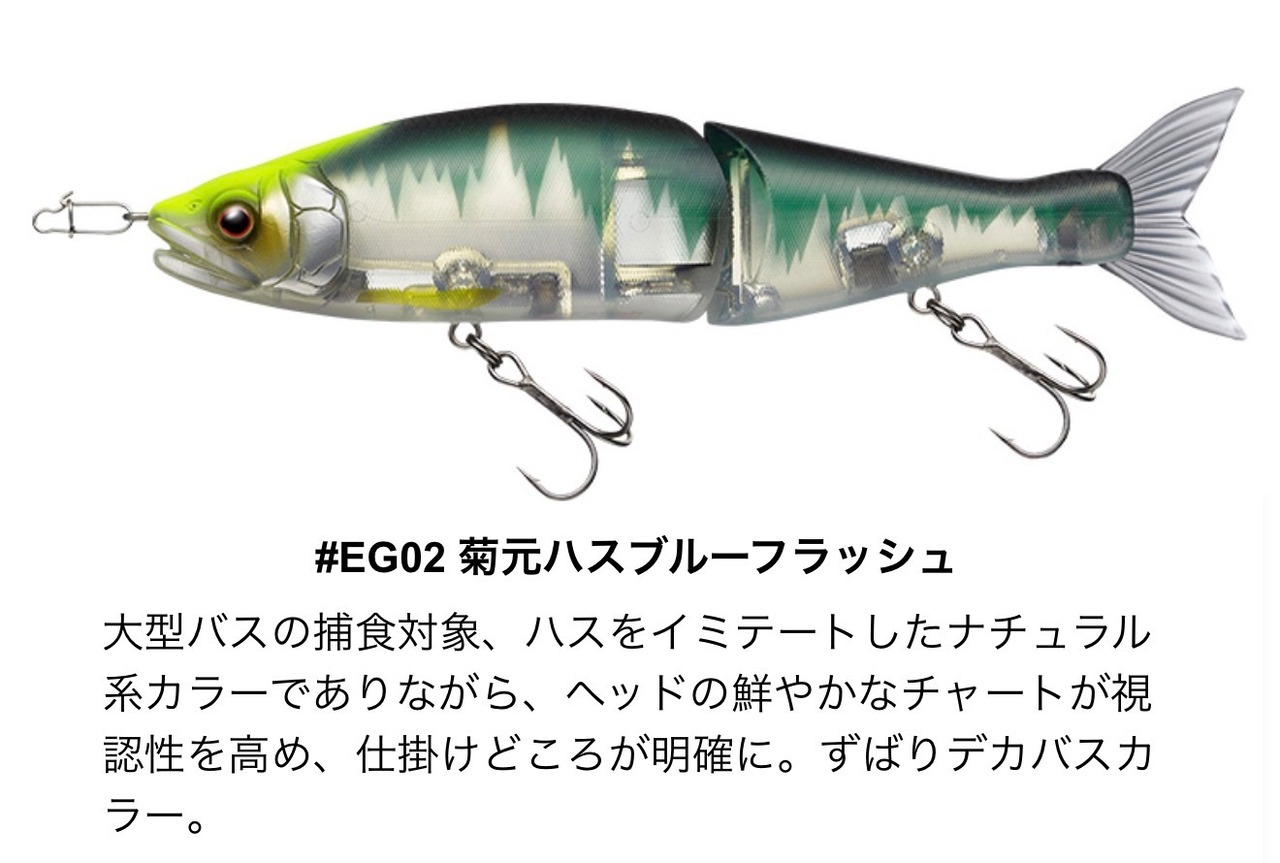 サイトフィッシングではボトムに置いてステイさせた状態から気になって仕方のないターゲットが近寄って来たところで突然ショートジャークさせるバピューン釣法でリアクションバイトを誘発!‥‥表層で中層で底で‥で‥‥S字系ルアーの元祖であり追随を許さないジョインテッドクロー×菊元俊文のニューカラー